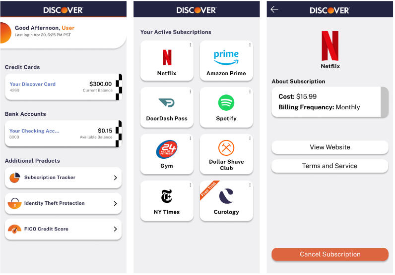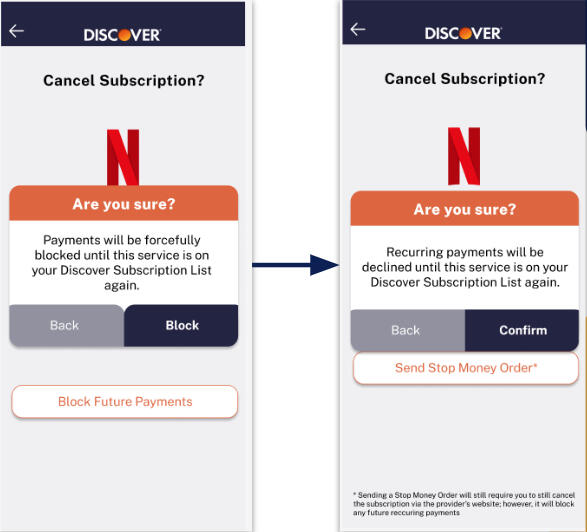 we chose a flow where the user would cancel a subscription within the Discover application itself.