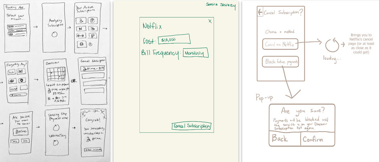 We created sketches to simulate the flow of how users would navigate the application. Specifically,