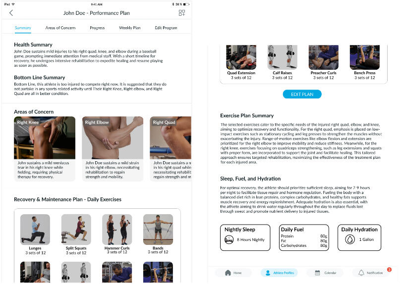 If given more time, we would have worked on developing a UI for the athlete-side (or patient-side). From the UI we were provided, it contained much less information than